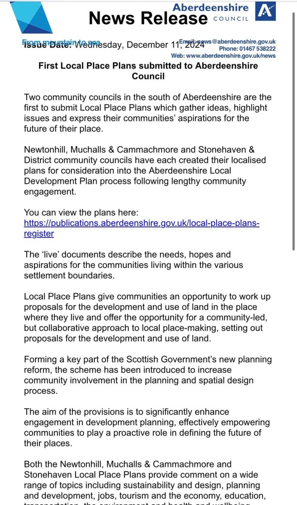 Any comment should be sent to St Cyrus Community Council